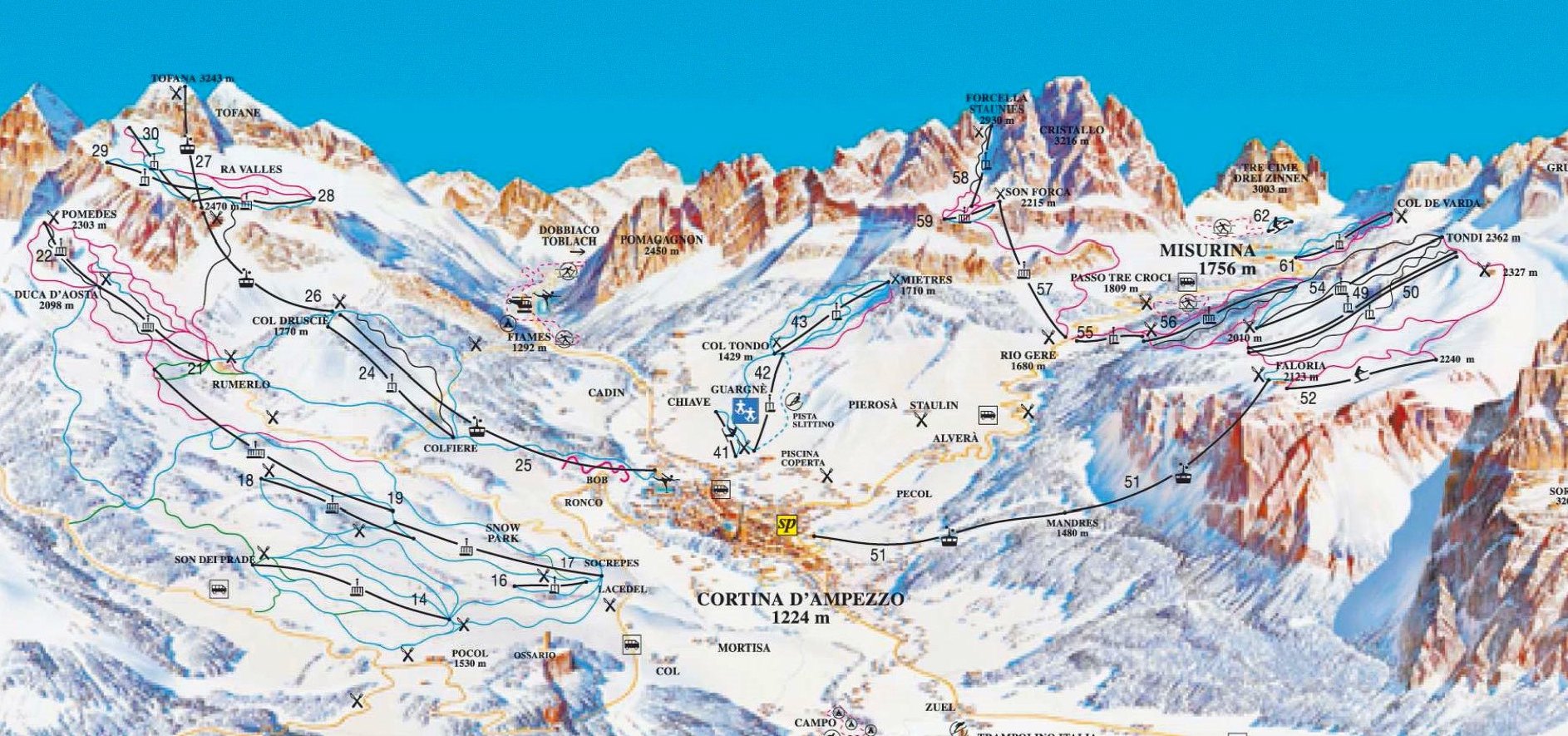 滑雪胜地Cortin-d'Ampezzo的地图