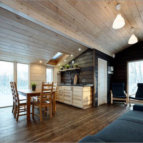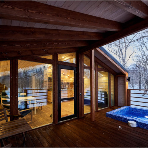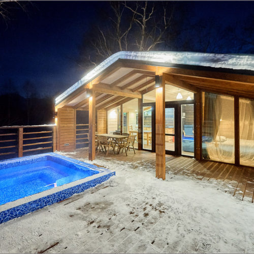 小木屋面积为 45 平方米,最多可容纳 6 位客人。 Forest Lodge所有小木屋的设计基础都是“轻质极简主义”的内饰和功能,这间小木屋也不例外。 天然木材、绿化、带用餐岛的设备齐全的厨房和起居区的软垫家具。 整个房子的全景窗户让您可以欣赏堪察加半岛的自然美景。 大露台有自己的小游泳池和桌椅。