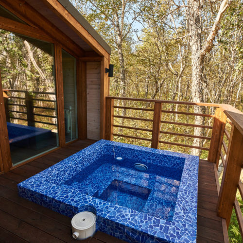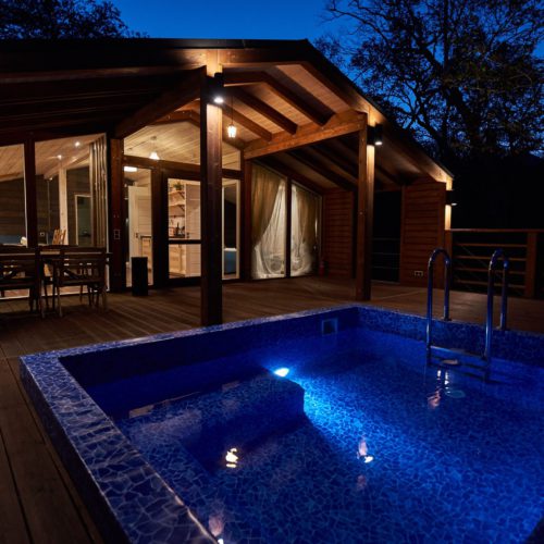 房间位于共用大楼内。 面积 - 20 平方米,床位数量 - 2 张。 客房与 Forest Lodge 酒店的其他所有设施一样,采用斯堪的纳维亚风格装饰:柔和的自然色彩、木质镶板以及别致的全景窗户带来的充足光线。 配有一张双人床,上方有天窗、一间带餐具、冰箱和水壶的小厨房、一台电视、一张带椅子的餐桌以及一间带淋浴的浴室。 舒适的露台上配有供放松的家具和带温泉水的私人游泳池。